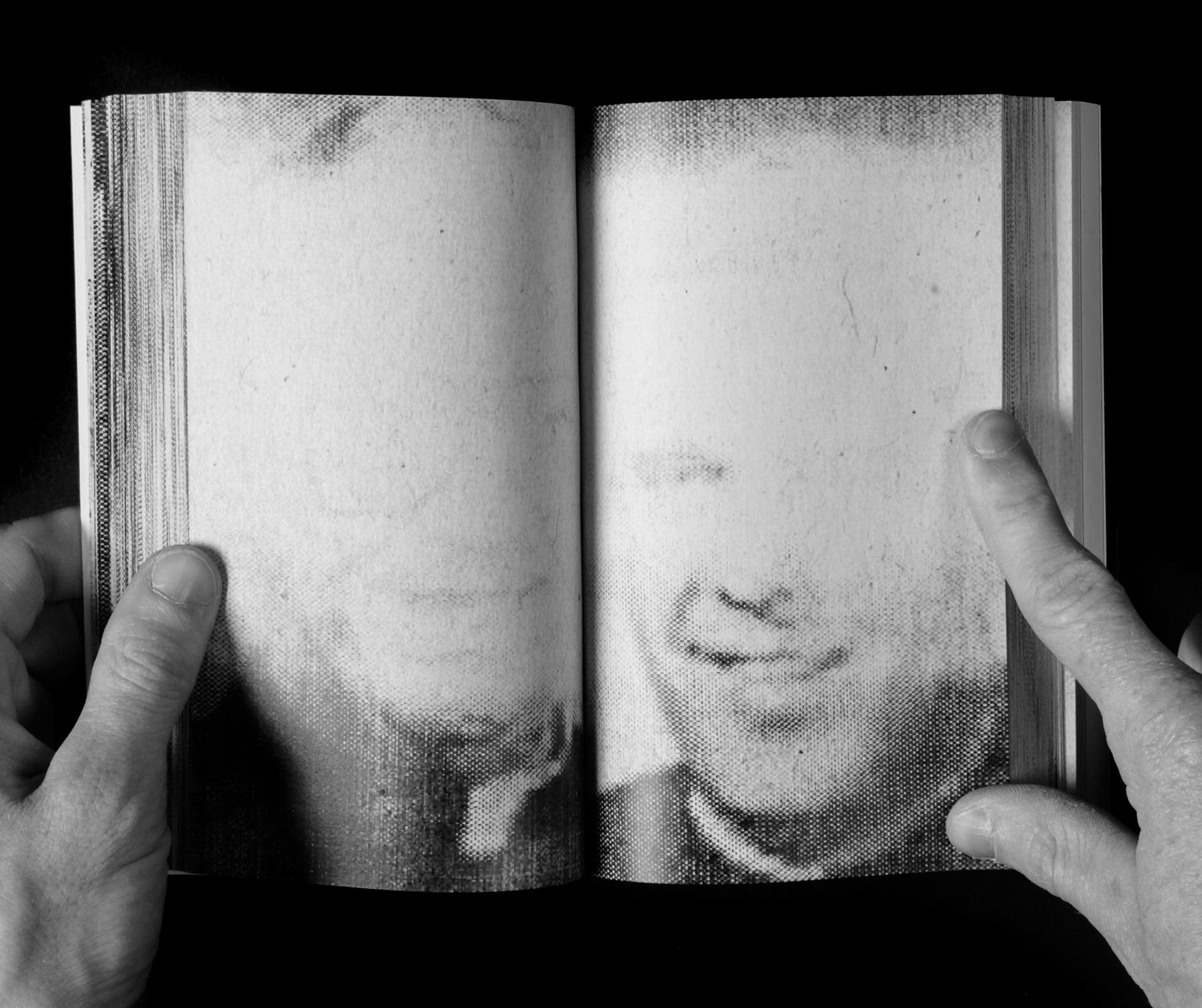 The images from this section of the book were taken from the website Bishop-Accountability.org whose mission is to provide the most complete report possible of abusive priests in the USA. The idea for this section was to show a sample of accused persons to the point of nausea through the abundance and incessant scrolling of these devilish yet smiling faces… The faces were printed when there was almost no ink left in the machine, which produced a similar quality for each picture and created a progressive deterioration until reaching the complete erasure of the faces.