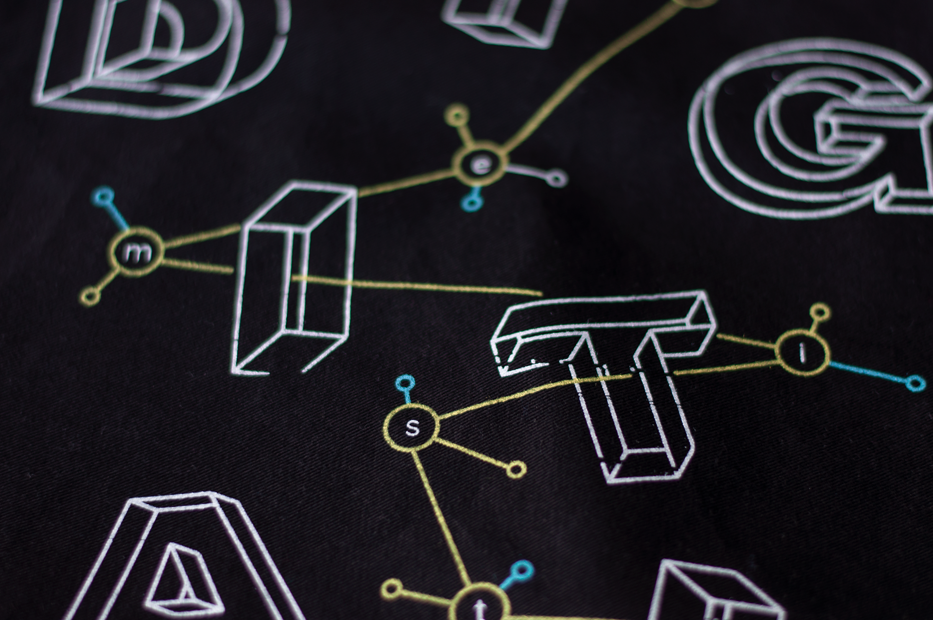 Acato Digital Agency gives each year for Christmas a gift to its clients, relations and employees. The idea for 2018 was a bag full of surprises and I was asked to make a design for the screen printed bags. The design had to be related to digital chemistry which was our new branding direction at that time.